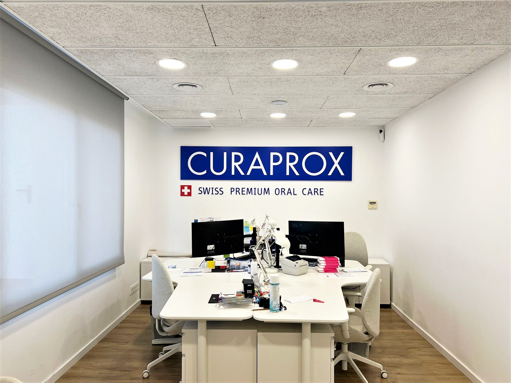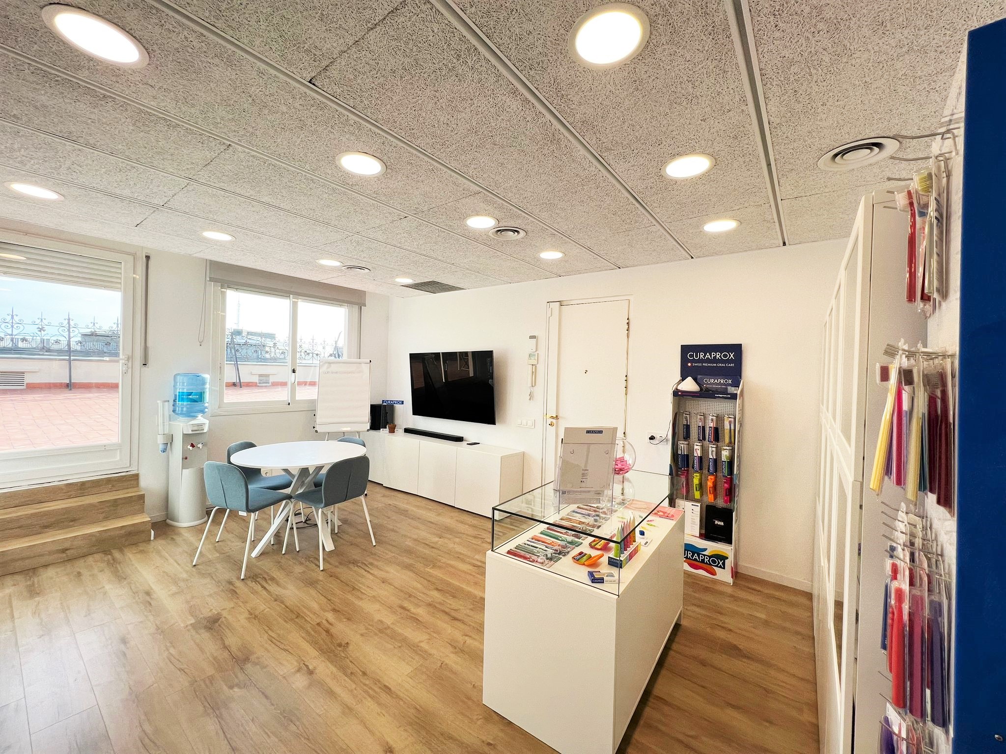 El nuevo diseño de las oficinas CURAPROX en Barcelona refleja una estética moderna y actual. Hemos incorporado elementos de diseño contemporáneo que elevan la estética general y crean un ambiente de trabajo estimulante.